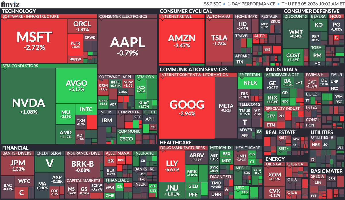 Stock Market Today, Feb. 5: S&P, Nasdaq fall after layoff data surprise; Alphabet details overspending