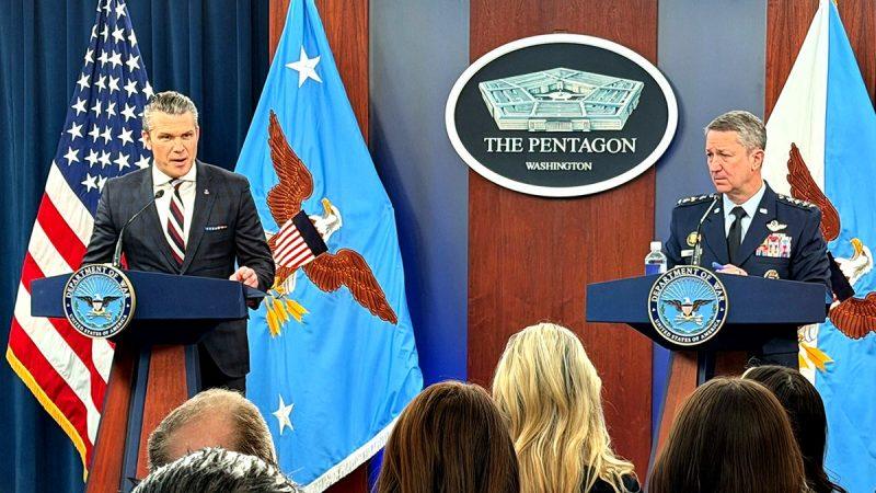 ‘The Iranian Navy rests at the bottom of the Persian Gulf. Combat ineffective, decimated, destroyed, defeated. Pick your adjective,’ Hegseth said. ‘In fact, last night we sunk their prize ship, the Soleimani. Looks like POTUS got him twice. Their navy, not a factor. Pick your adjective. It is no more.’